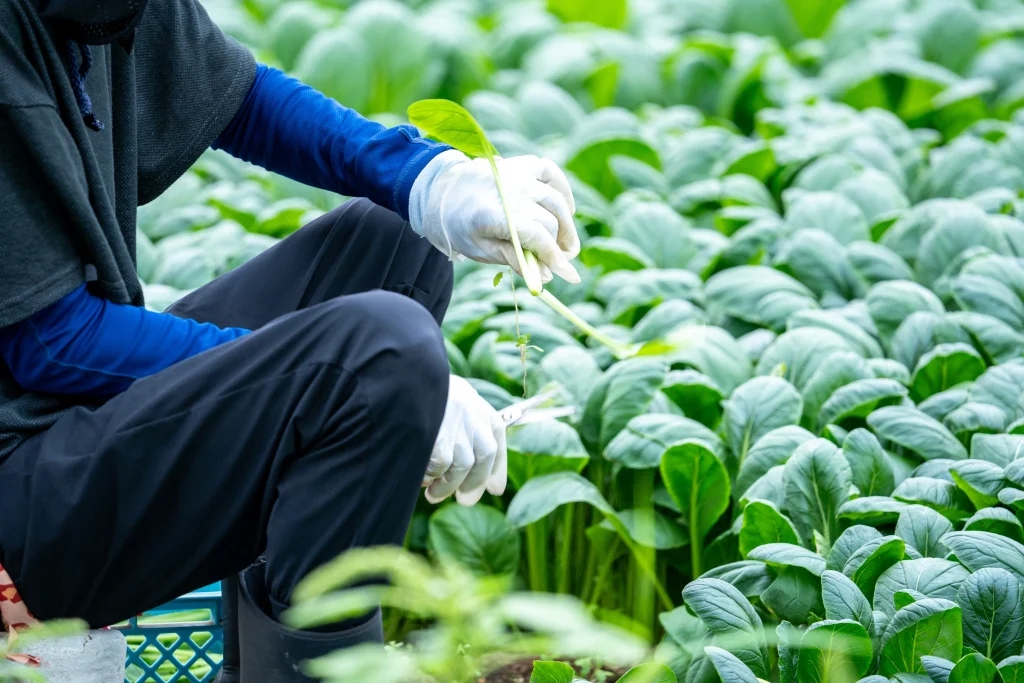 私たちが育てる小松菜は、ハウス栽培ならではの管理のしやすさを活かし、みずみずしくやわらかな葉に育てています。