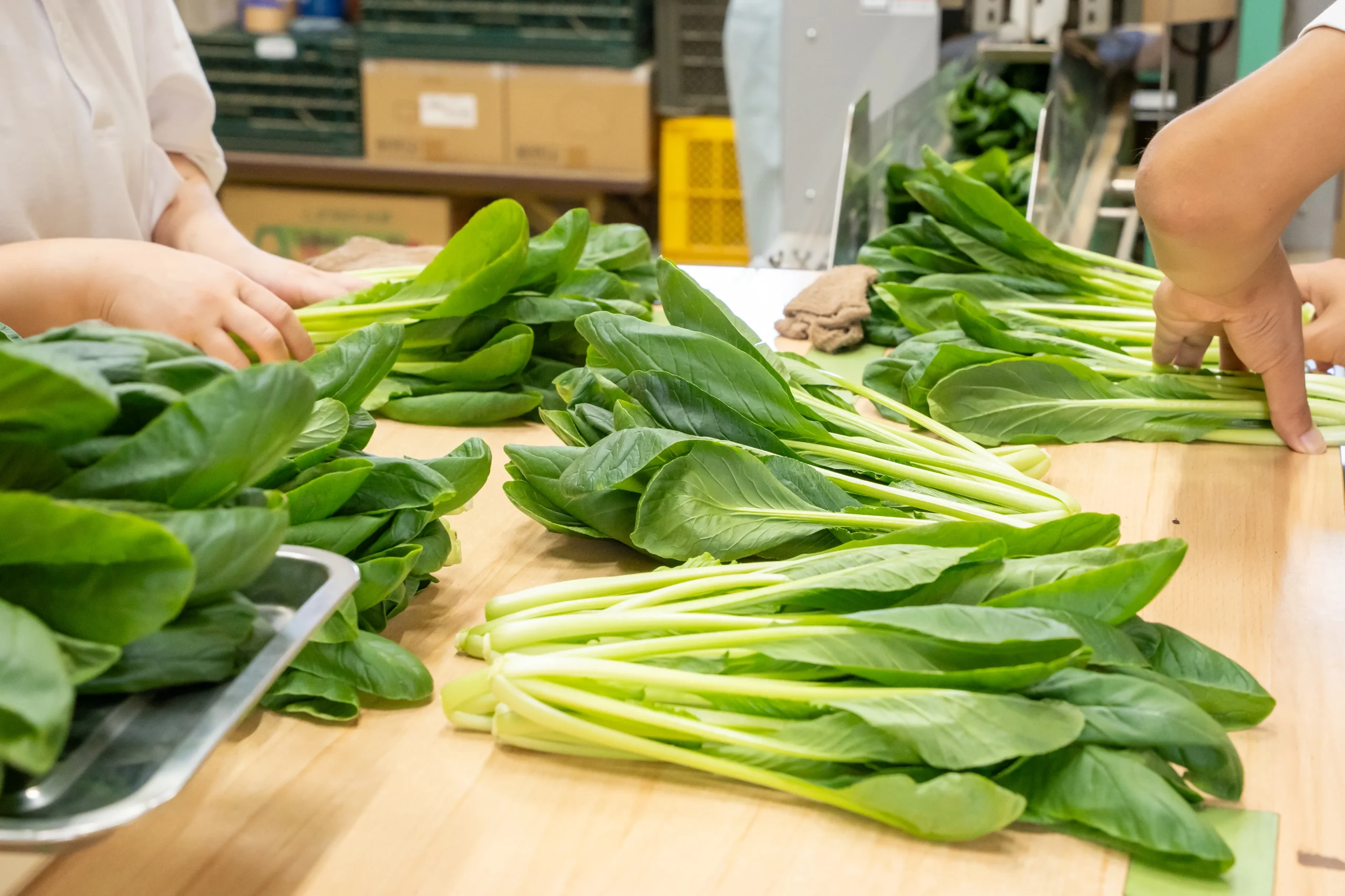 収穫した小松菜はすぐに選別・梱包し、採れたての鮮度を保ったままお届け。
